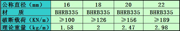 右旋錨桿桿體參數(shù):